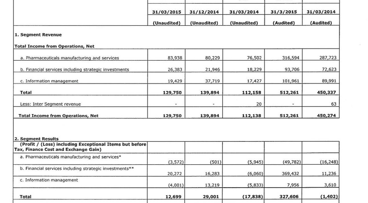 a. The annual report is very descriptive and talks about the revenue growth. What about the operating profits of the Pharma segment? The annual report does not allude what the company was doing to improve the profits of the segment which contributed to ~60% of the sales and losing money?